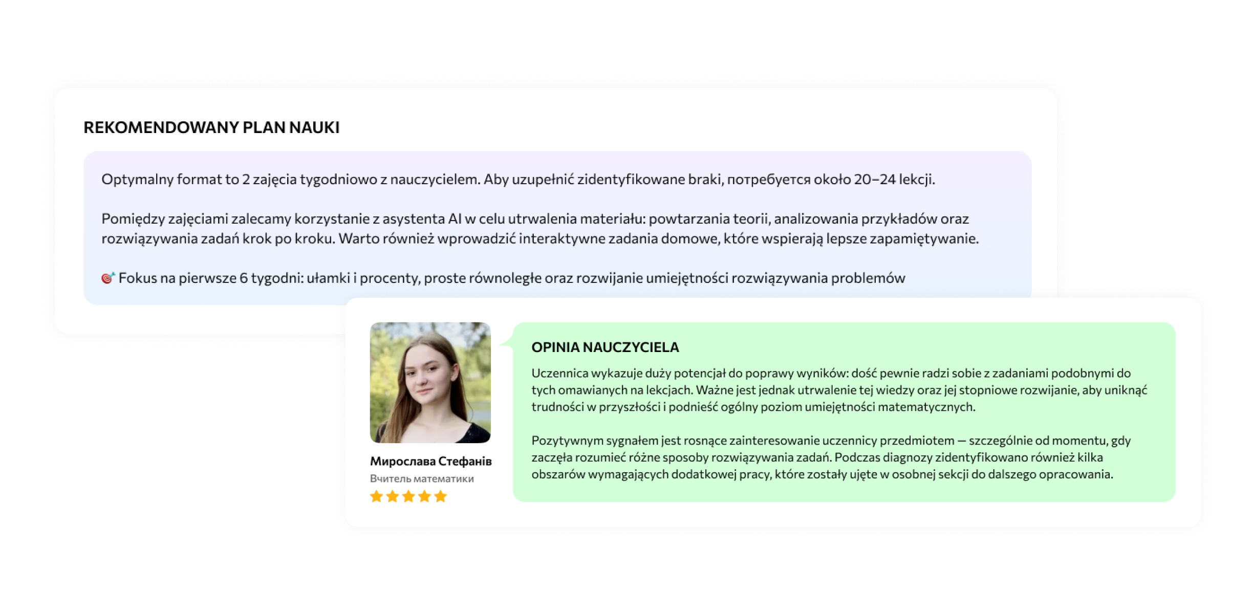 - ✅Rozszerzone wsparcie + rekomendacje nauczyciela